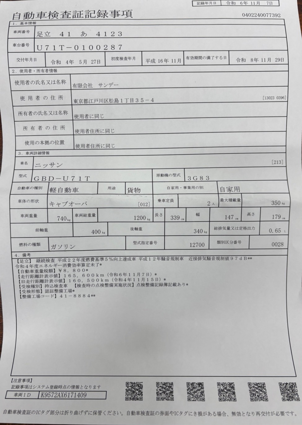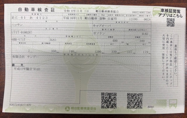 自動車検査証記録事項 | 車検諸費用 |
